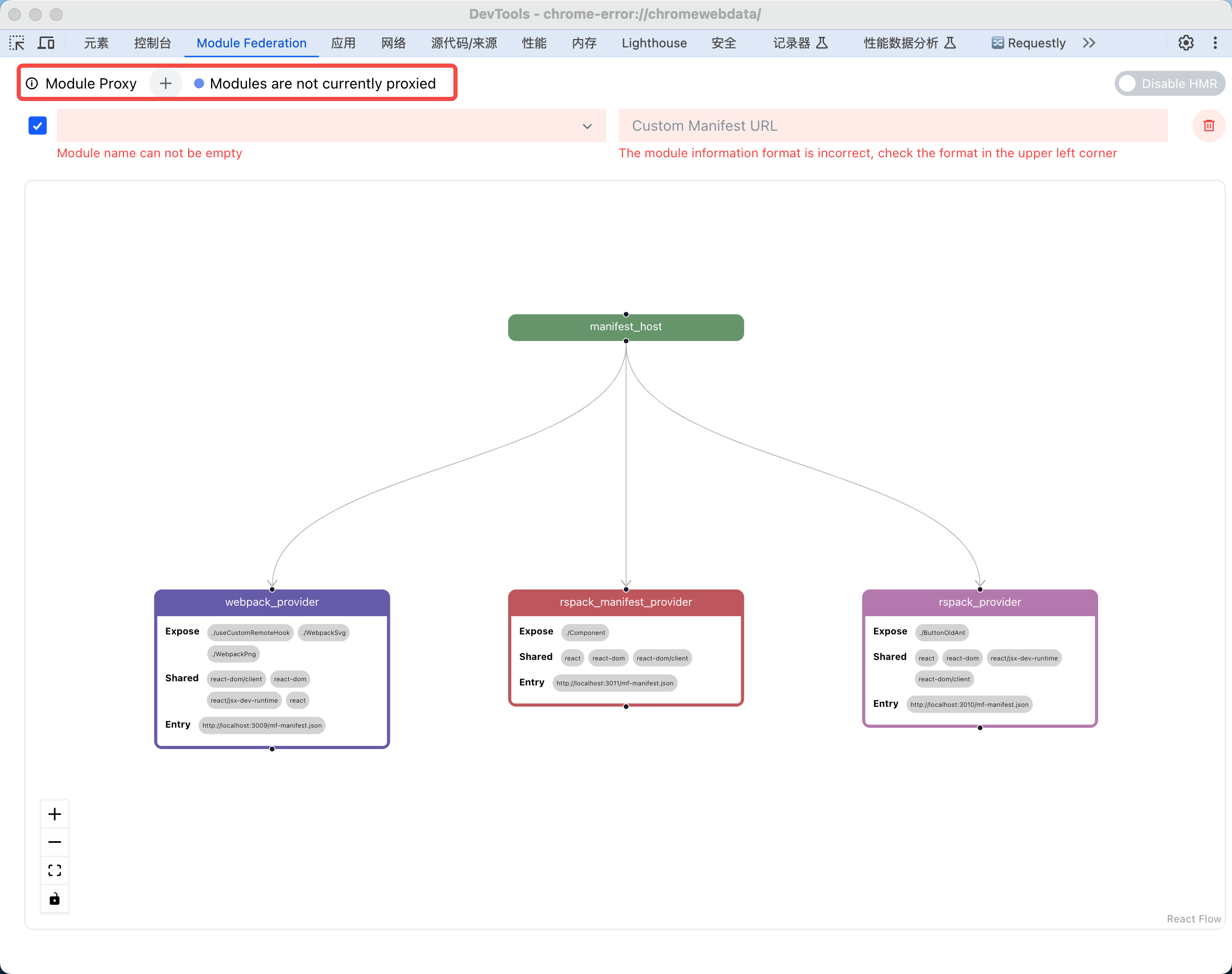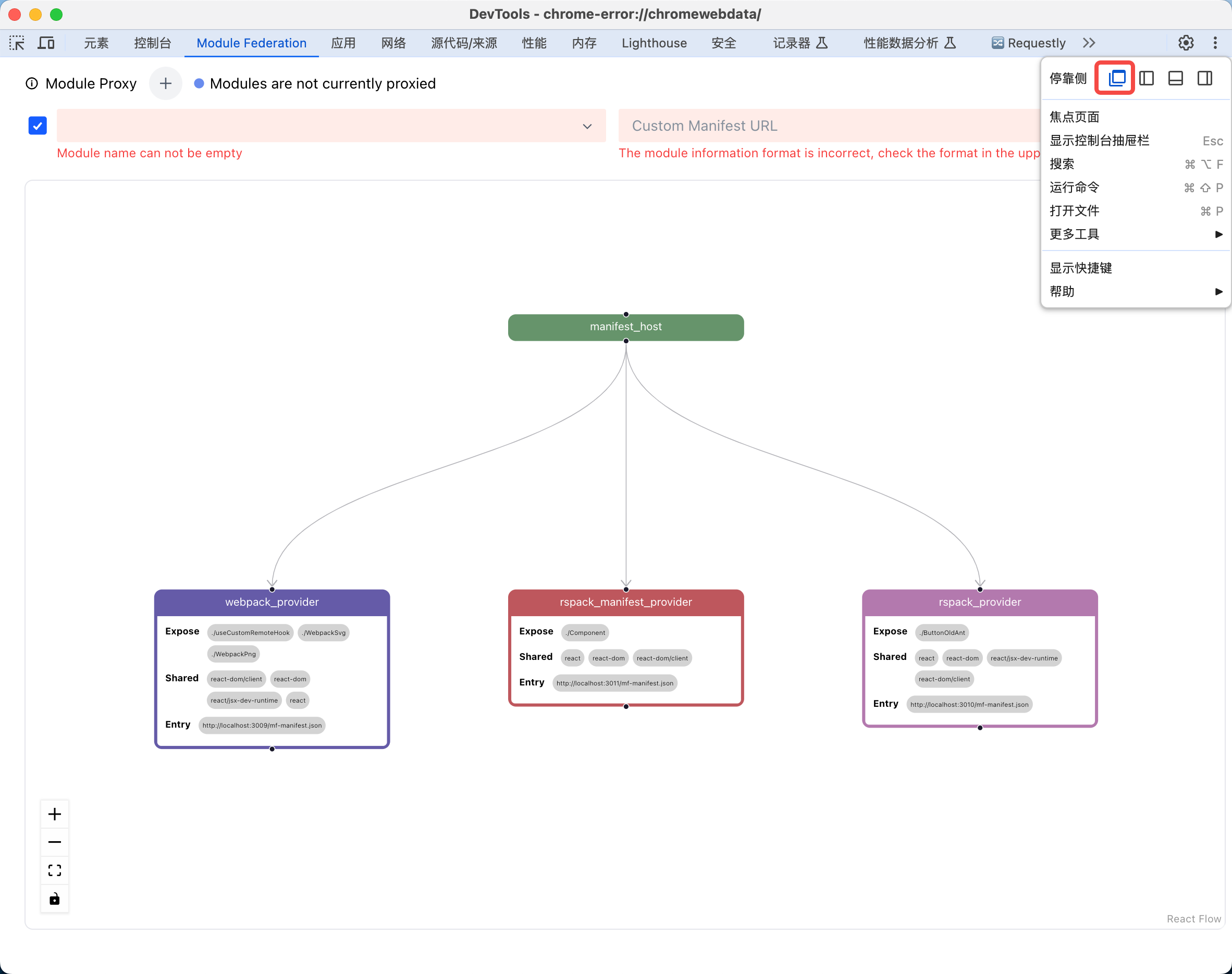 architecture differs from the traditional monolithic application development model. Its characteristics of separate development, deployment, and debugging necessitate a new set of debugging tools to meet new usage scenarios, such as: how to verify the effect of modules in actual projects when developing Module Federation